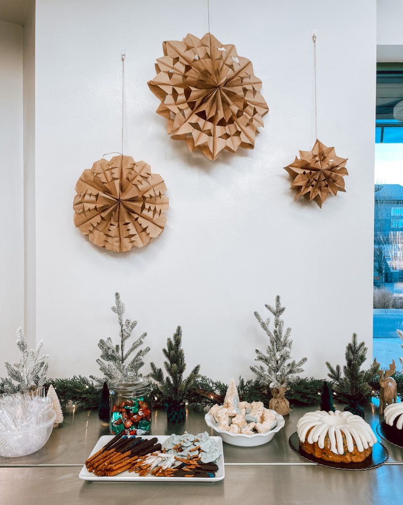- Dessert: Rice Krispies, chocolate covered pretzels & Nothing Bundt Cakes