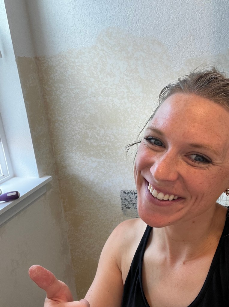 It is hard to tell from the photo, but here in Colorado we have orange peel wall texture. I don’t have an angry bone in my body…but our wall texture drives me nuts. I went back and forth on ideas for about 6 months and decided that covering up the orangepeel was a must.