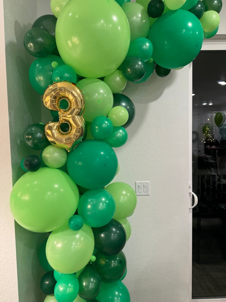 - Balloon Arch – photo below (I just attached to the wall with fishing line & 3M hooks)