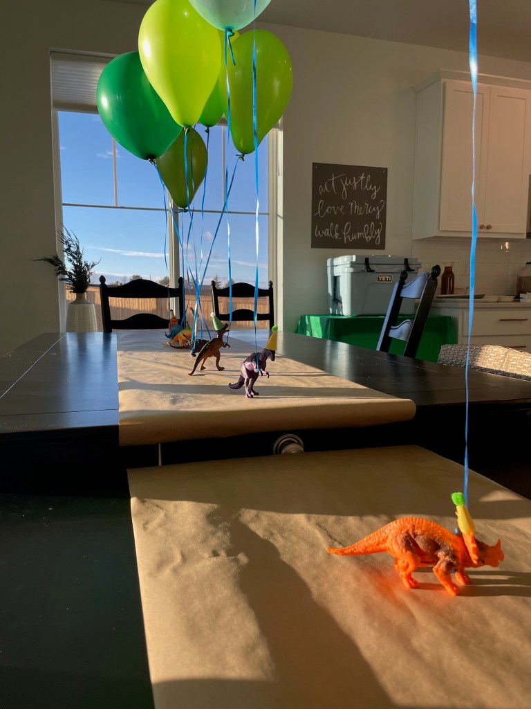 I’m always looking for decor on a budget. I don’t want to drop a pretty penny on things that are going to be used once…so why not turn some toys into decor?! Also, kraft paper makes the perfect runner or “table cloth” and is an easy clean up!