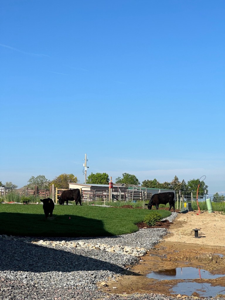 Let me tell you about the cows. These little men are our neighbors and they just “happened” to get out the week our sod was installed. They christened our grass & seemed to enjoy it. I wasn’t quite sure what to do, so I am sure I made a fool of myself telling the cows to “shoo” and “go home” and act as their herding dog to get them home.
