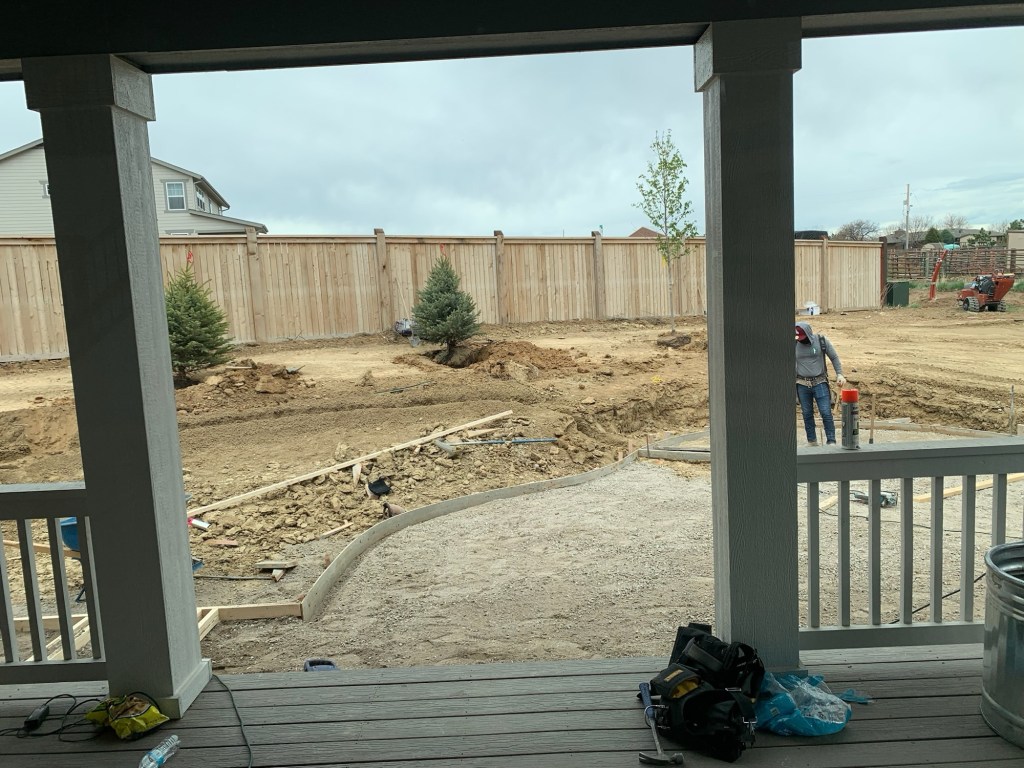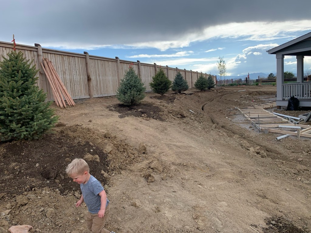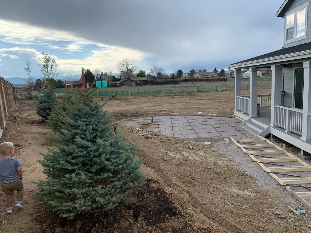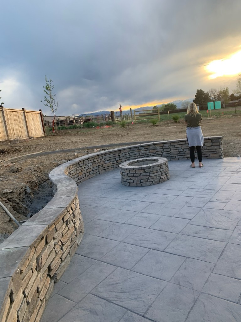 I’m not an expert when it comes to landscaping design, but I did an extensive pinterest board with ideas. I sent a lot of those pictures to our landscaper & they were amazing to work with. All I asked for were some trees, fire pit & “flat” grass where we could kick a soccer ball.