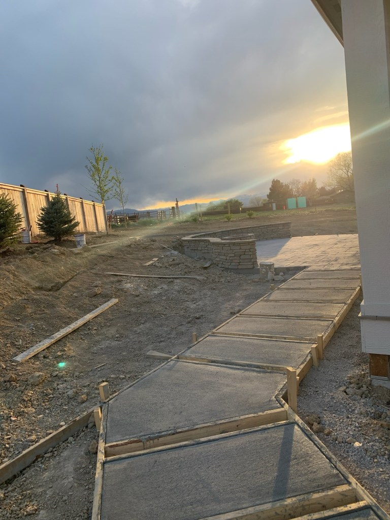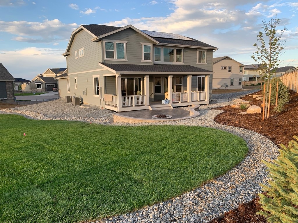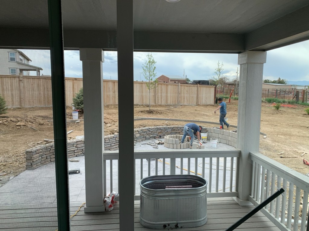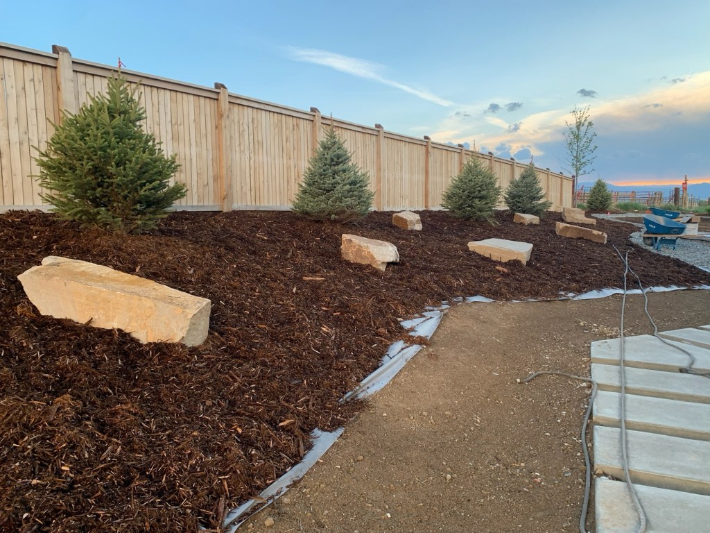 I’m not an expert when it comes to landscaping design, but I did an extensive pinterest board with ideas. I sent a lot of those pictures to our landscaper & they were amazing to work with. All I asked for were some trees, fire pit & “flat” grass where we could kick a soccer ball.