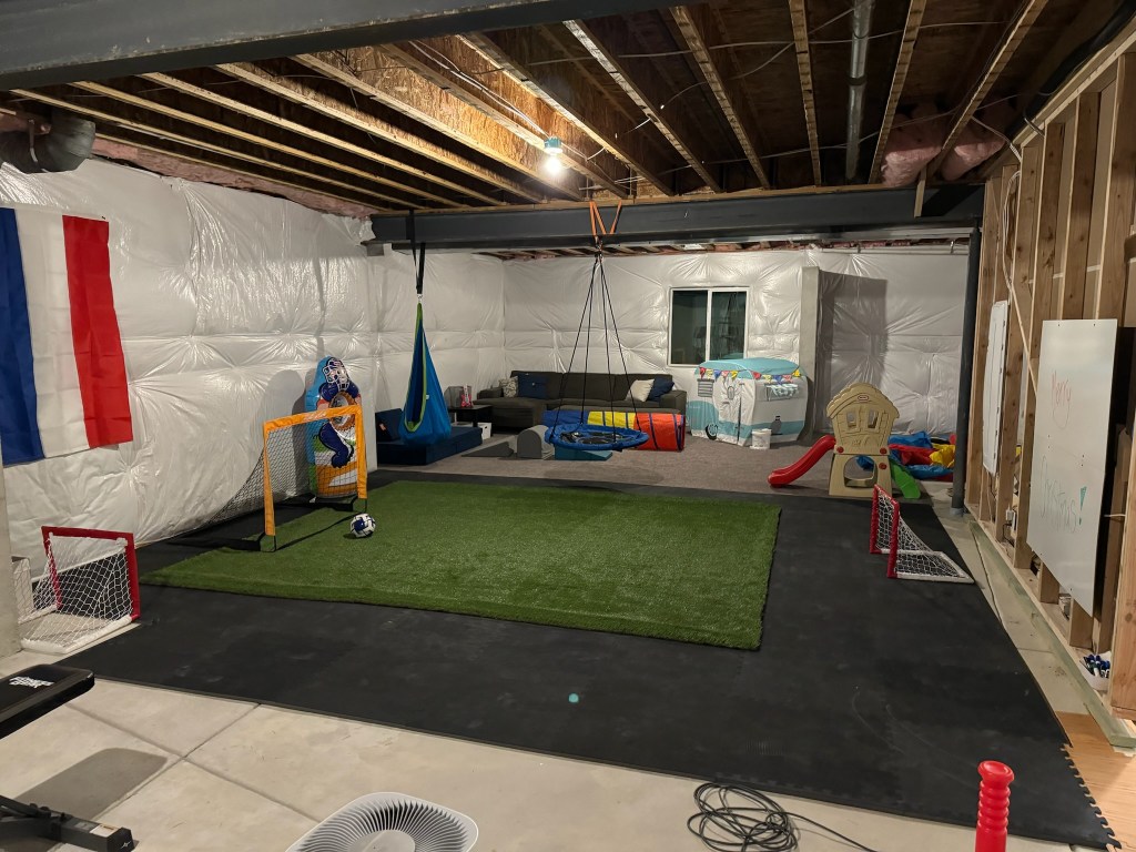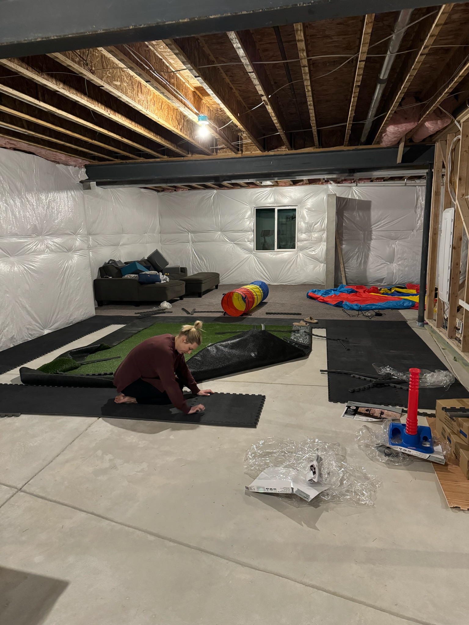 To complete the floor, we added gym flooring from Home Depot, which made the space even more versatile.