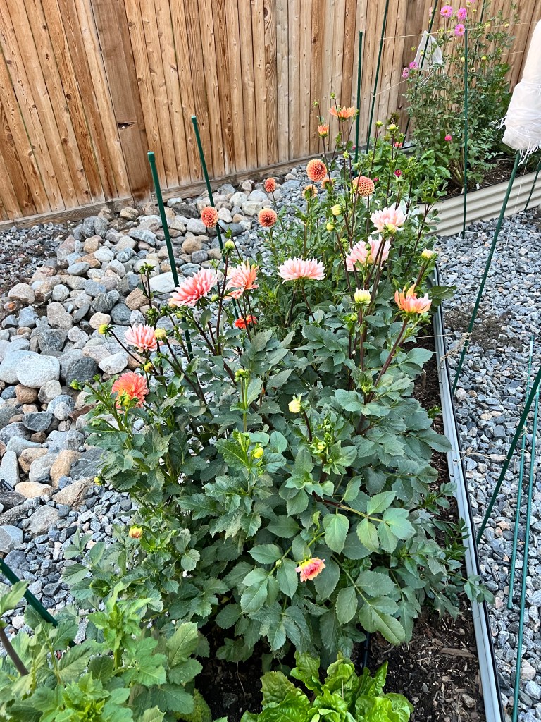 - Needed to work on staking & tying the dahlia beds. It was a more time consuming this year based on the fact that there are now 3 beds vs 1. They are getting tall and starting to fall over. Making sure the dahlias are supported is real important.