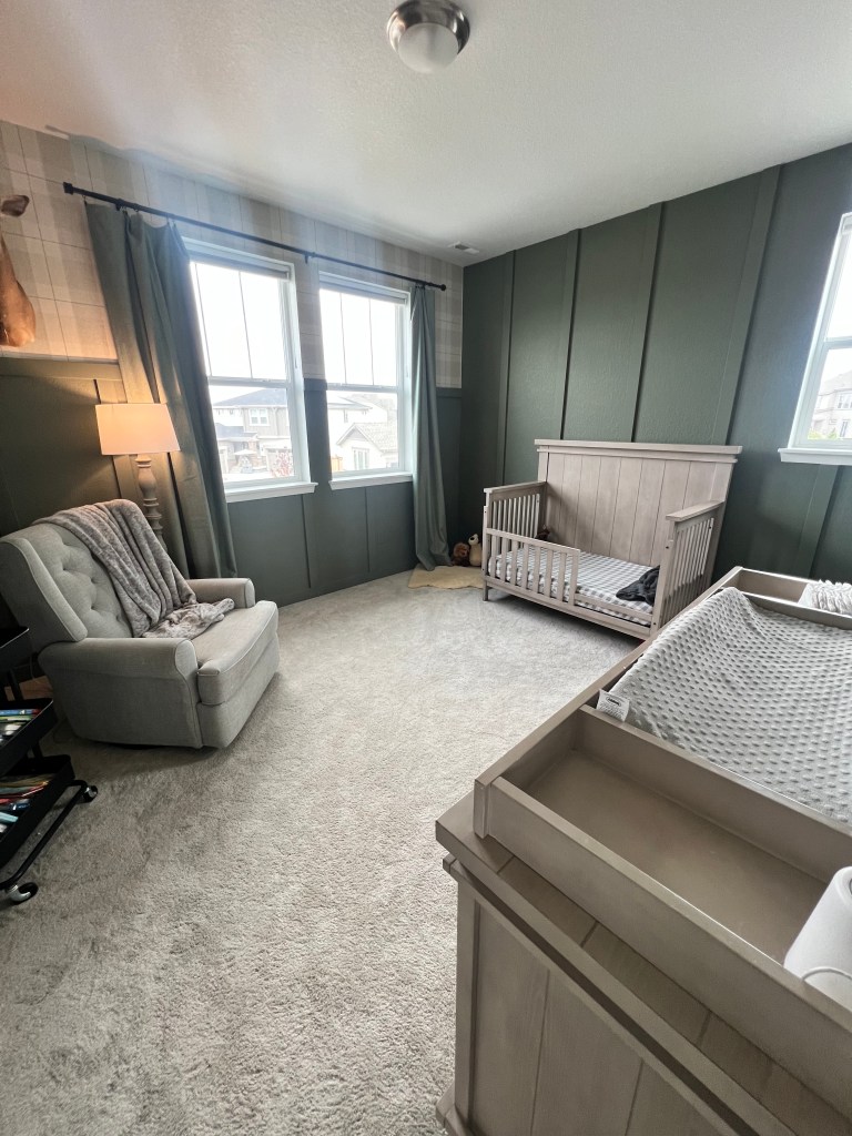 It only took two years, but I finally strapped on my workin’ pants and finished our youngest’s bedroom! My goal was to make it feel like a clean, modern English hunting lodge — warm and cozy, but not dark or dingy.